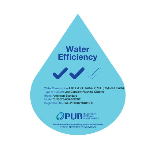 Water Consumption : 4.00 L (Full Flush) / 2.70 L (Reduced Flush)
