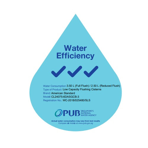 Water Consumption : 3.50 L (Full Flush) / 2.50 L (Reduced Flush)