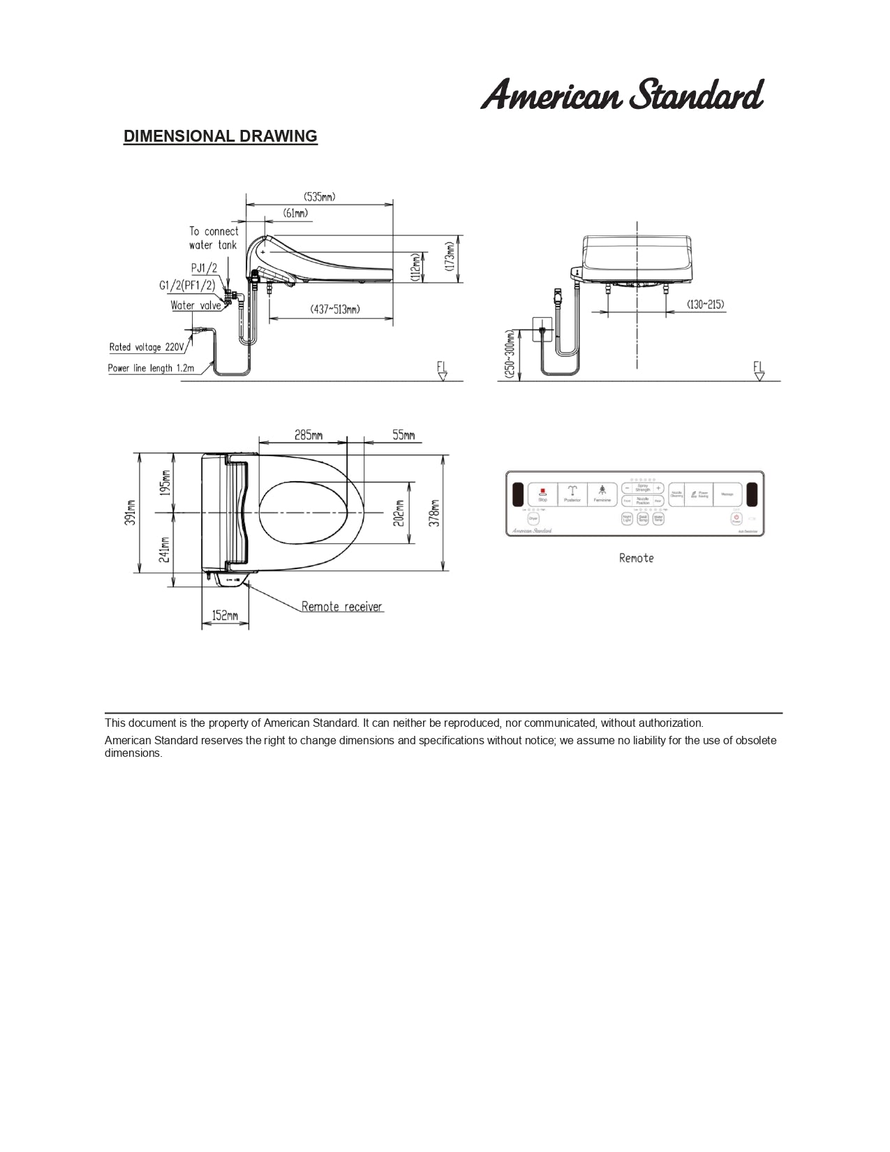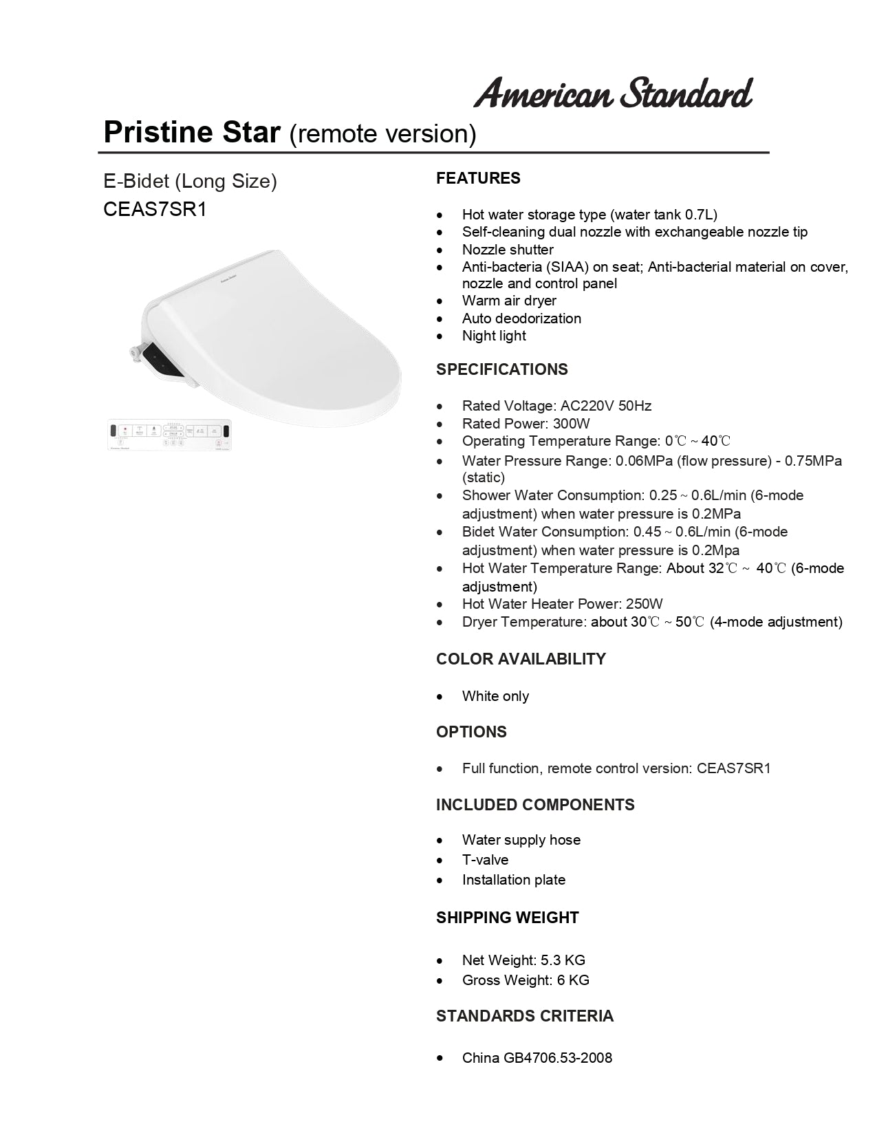 American Standard Pristine Star (Remote Control Version) E-Bidet CEAS7SR1-0100510P0