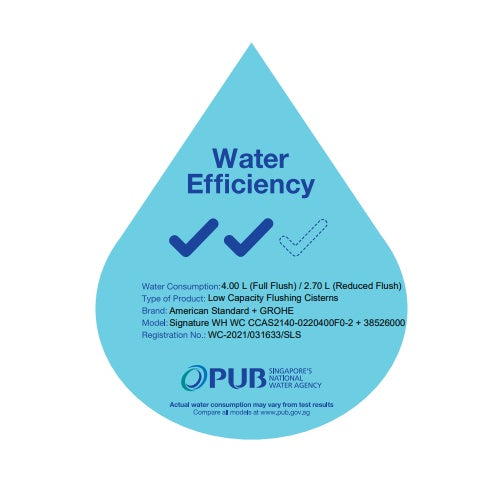 American Standard Signature Wall Hung Bundle includes CCAS3140-3W20400T0 Toilet Bowl, Grohe Rapid SL WC Bracket with Flushing Cistern 0.82M or 1.13M and Grohe Wall Flush Plate