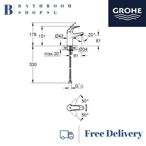 Grohe BauCurve Single-Lever Basin Mixer 32848000