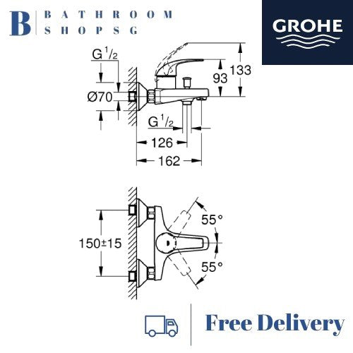 Grohe BauCurve Single-Lever Bath Mixer with Diverter 23599000 Chrome Faucet