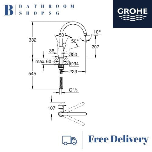 Grohe BauEdge 31233001  Swivel spout Single-Lever Kitchen Sink Mixer 1/2″