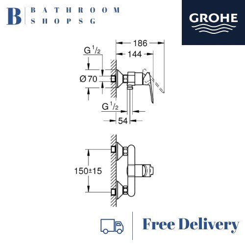 Grohe BauEdge Wall Mount Exposed Single-Lever Shower Mixer 23636000