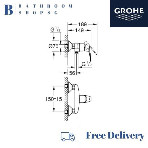 Grohe BauFlow Single-Lever Exposed Shower Mixer 23632000 | Wall Mount Bathroom Tap