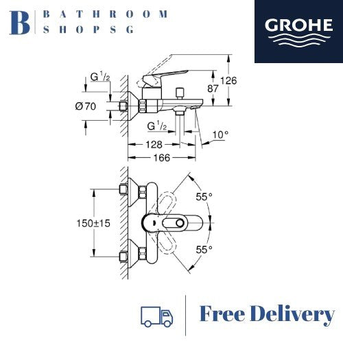 Grohe BauLoop Single-Lever Exposed Wall Mount Bath Mixer 23603000