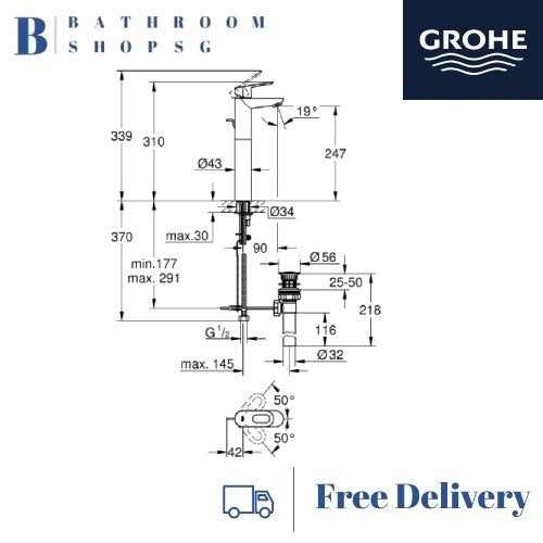 Grohe-32856000 BauLoop Single Lever Basin Mixer for free standing basins