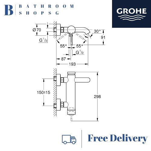 Grohe Essence Single-lever Exposed Bath Mixer | Grohe Bathroom Faucet 33624001 Chrome
