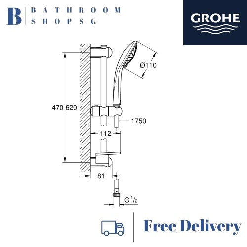 Grohe Euphoria 110 Massage Shower Rail Set Chrome | Grohe Sliding Bar 27231001