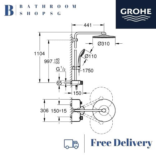 Grohe Euphoria SmartControl 310 Rainshower system with Thermostatic Shower Mixer 26507A00