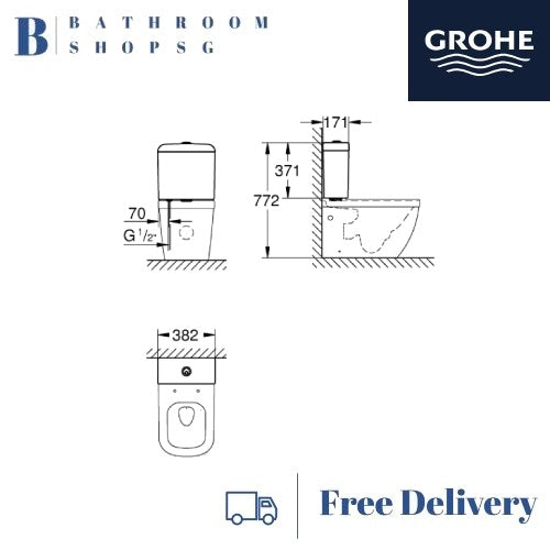 Grohe Euro Ceramic Floor Standing Set New includes WC-39338000, Seat Cover-39330002 and Cistern-39332000