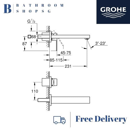 Grohe Eurocube 2-hole Basin Mixer M-size | Grohe Wall Mount Conceal Faucet 23447000