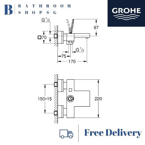 Grohe Eurocube Joy Single-lever Exposed Bath Mixer 23666000 | Wall Mount Bathroom Faucet