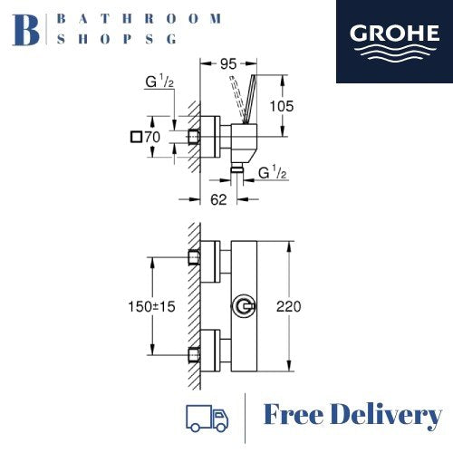 With crisp lines based on the cube and a fantastic price the minimalist GROHE Eurocube Joy shower mixer is perfect for anyone who wants a cool and contemporary bathroom. It’s also packed with GROHE’s cutting edge technology. Our brand new FeatherControl cartridges use state-of-the-art ceramic discs to create a rich and smooth lever action. That means controlling the flow and temperature of water has never been so precise and satisfying. Crafted with a multilayered coating of the purest StarLight chrome, the finish is scratch resistant and has a sparkling shine that lasts for years. This elegant mixer beautifully complements all the other products in the collection so you can design a coordinated and seamless bathroom.