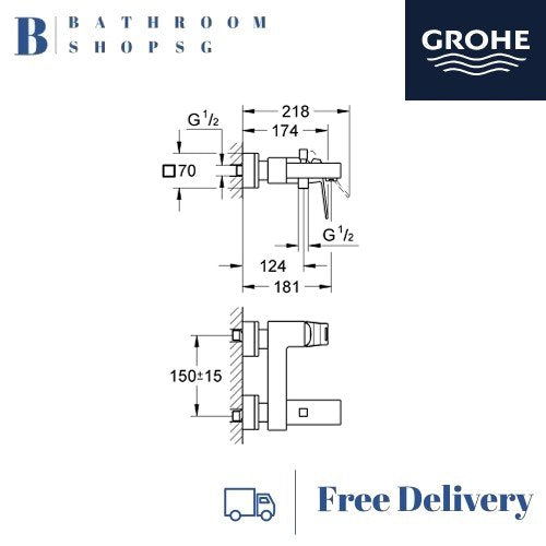 Grohe Eurocube Single-lever Exposed Bath Mixer 23140000