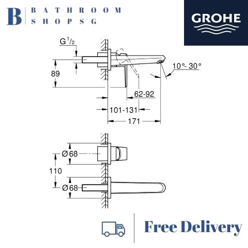 Grohe Eurodisc Cosmopolitan 2-hole Conceal basin mixer | Grohe Wall Mount Faucet 19573002
