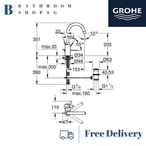 Grohe Eurosmart Cosmopolitan Single Lever Basin Mixer | Grohe High Spout Faucet 32830000