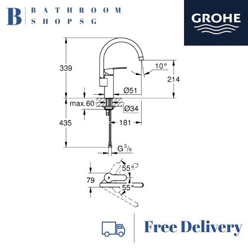 Grohe Eurosmart Cosmopolitan Single-Lever Kitchen Sink Mixer 30221002