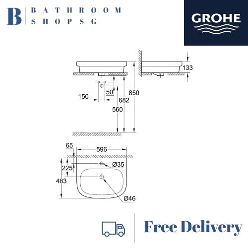Grohe Eurosmart Counter Top Basin 60 Alpine White 39198000 | Grohe Bathroom Sink