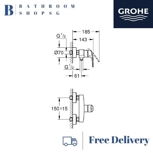 Grohe Eurosmart Single-Lever Exposed Wall Mount Shower Mixer 33555003