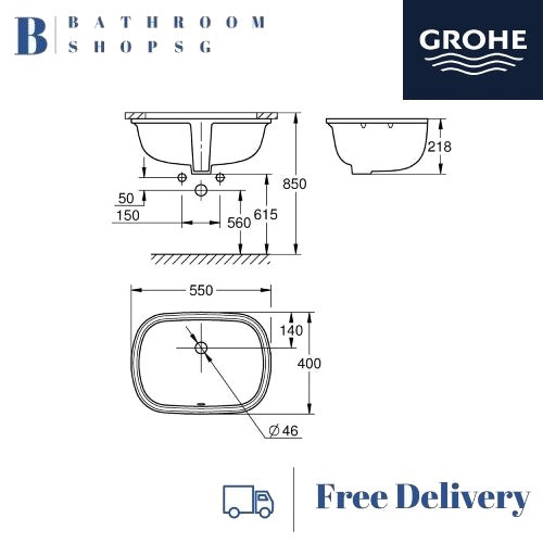 1. Grohe Eurosmart Undercounter Basin Oval Alpine White 101022SH00