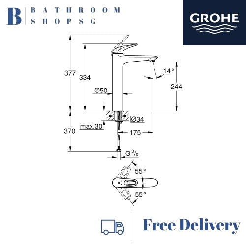 Grohe Eurostyle Single Lever Basin Mixer XL-size | Grohe Free Standing Basin Faucet 23570003