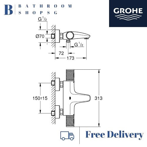 Grohe Grohtherm 1000 Performance Thermostatic Exposed bath mixer 34830000