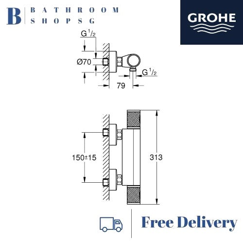 Grohe Grohtherm 1000 Performance Thermostatic Exposed shower mixer 34827000
