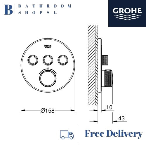 Grohe safestop plus optional temperature limiter at 43°c or 46°c included