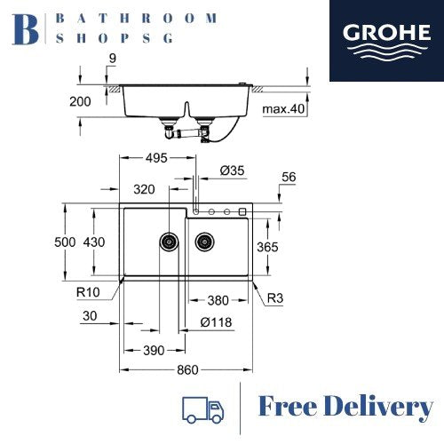 Grohe K500 Composite Sink Top Mount Double Bowl Kitchen Sink 31649AP0 :