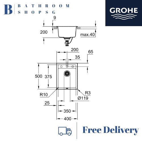 Grohe K700 Composite Sink Top Mount Single Bowl Kitchen Sink 31650AP0:
