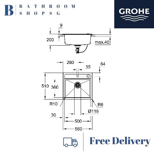 Grohe K700 Composite Sink Top Mount Single Bowl Kitchen Sink 31651AP0