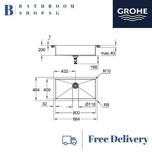 Grohe K700 Stainless Steel Top Mount Single Bowl Kitchen Sink 31580SD1 | Grohe Undermount Kitchen Sink
