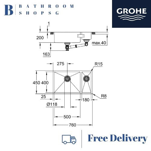 Grohe K700U Stainless Steel 80-S Undermount Double Bowl Kitchen Sink 31575SD1