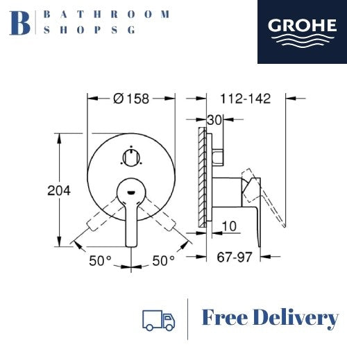 GROHE Lineare Single-lever Conceal Shower Mixer Trimset With 3-way Diverter 24095001 Chrome