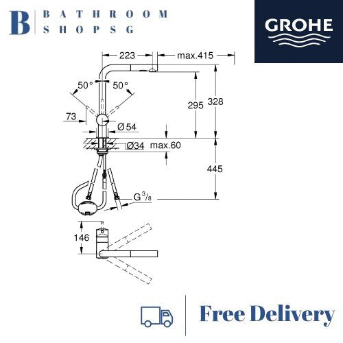 Grohe Minta 30274DA0 Single-Lever L-Spout Kitchen Sink Mixer 1/2″