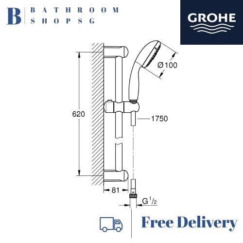 Grohe NTempesta 100 IV Shower Rail Set 600mm | Sliding Rail Set 27795001