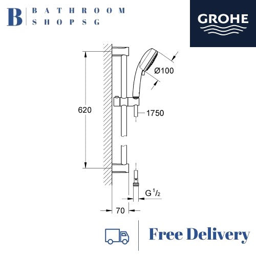 Grohe New Tempesta Cosmopolitan 100 III Shower Rail Set 3 Sprays Pattern 600mm 27579002
