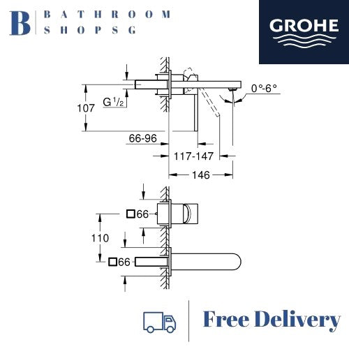 Grohe Plus 2-hole Conceal basin mixer M-Size | Grohe Wall Mount trimset 29303003