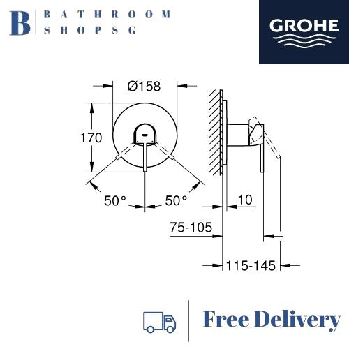 GROHE Plus Single-lever Conceal shower mixer Trimset 24059003