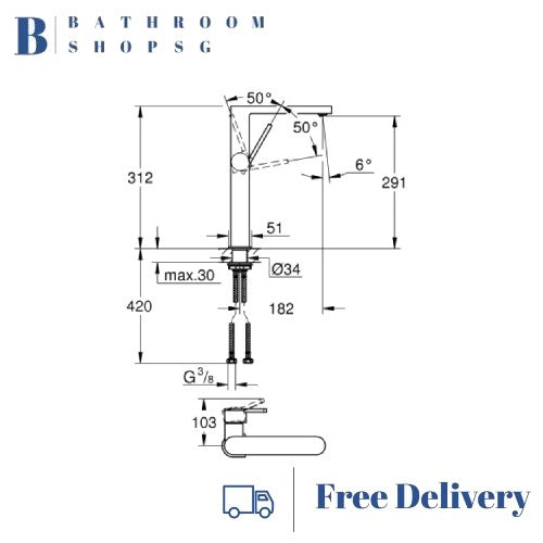 Grohe Plus Single-Lever Vessel Basin Mixer XL Size 32618003 | For Free Standing Basin