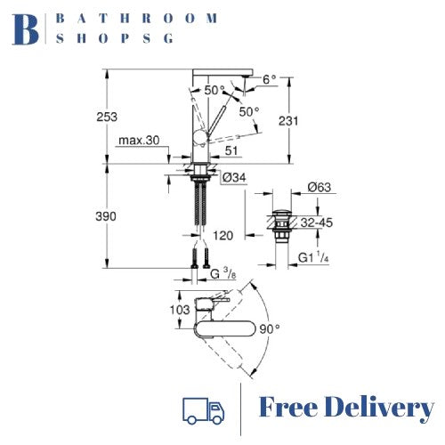 Grohe Plus Single-Lever Basin Mixer with Pop-up Waste set 23873003