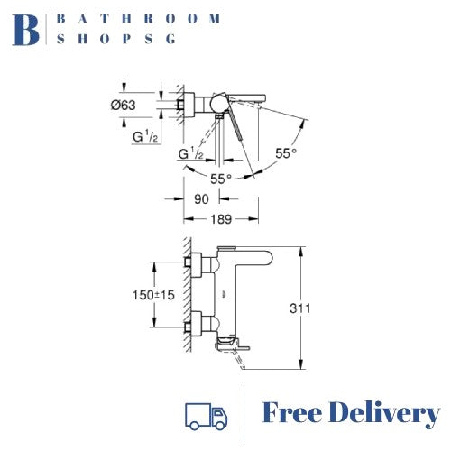 Grohe Plus Single-Lever Wall mounted Exposed Bath Mixer 33553003 | Bathroom Faucet