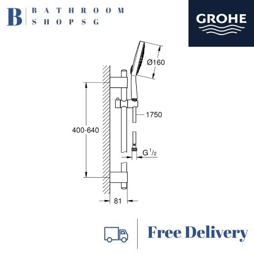Grohe Power&Soul Cosmopolitan 160 Shower rail set 4+ sprays 27744000 | Grohe Sliding Rail Set