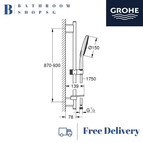 Grohe Rainshower Smartactive 150 Shower Rail Set 3 Sprays 26594000 | Grohe Sliding Rail Set