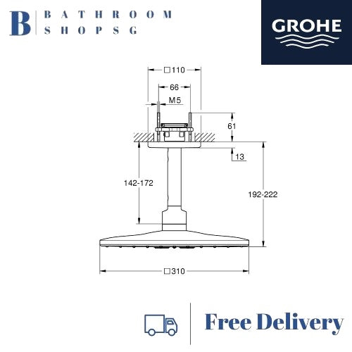 Grohe Rainshower Smartactive 310 Cube Head Shower Set Ceiling 142 Mm, 2 Sprays 26481000 | Grohe Overhead Shower
