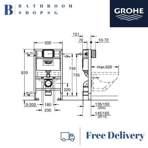 Grohe Rapid SL Element for WC, 0.82 m installation height 38526000 | Grohe Toilet Flushing Cistern :