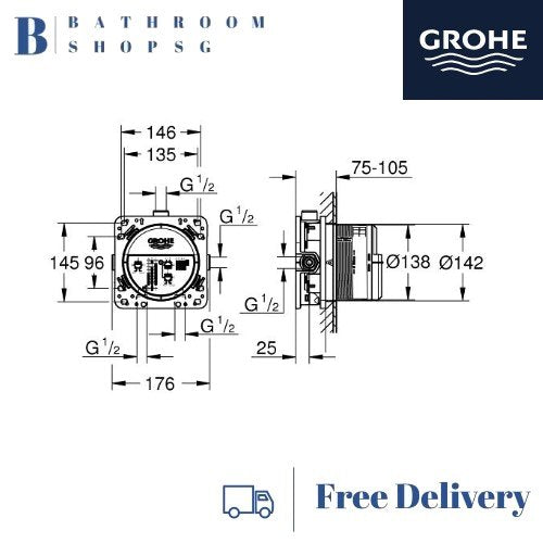Grohe Rapido SmartBox Universal rough-in box 35600000 | Concealed Body for Bath Shower Mixer