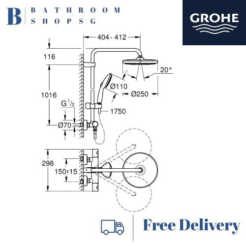 Grohe Tempesta System 250 Shower system with thermostat for wall mounting 26670001 Rainshower System